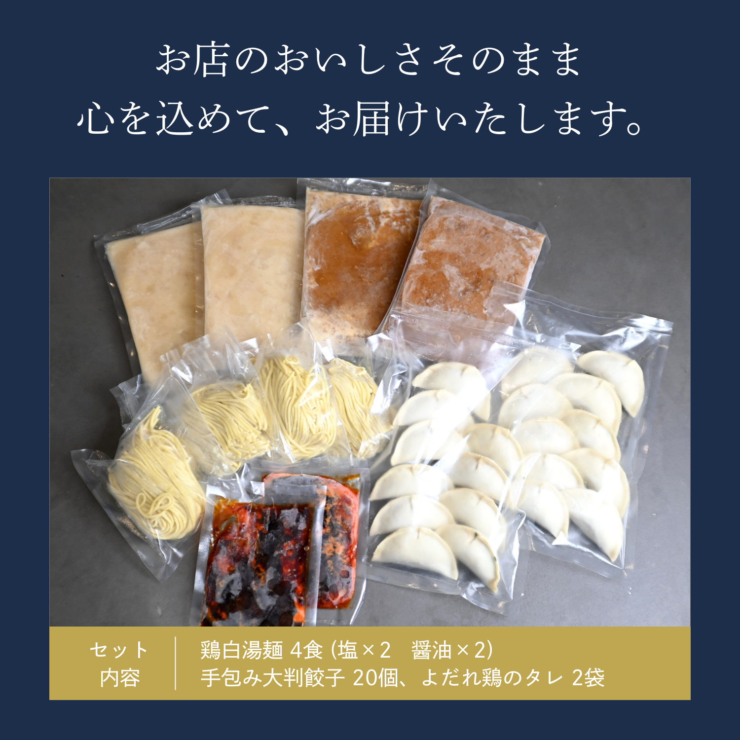 【ギフトBOX入り】濃厚鶏白湯麺4食(塩×2・醤油×2)+餃子20個セット