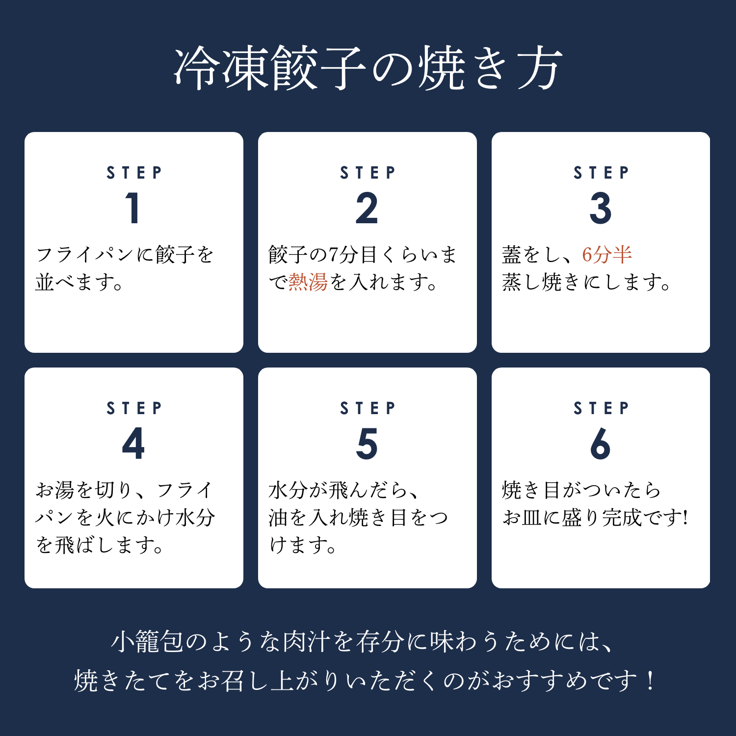 丁寧に炊き上げた鶏白湯スープをふんだんに使用した、肉汁たっぷり、具材が詰まった餃子です。